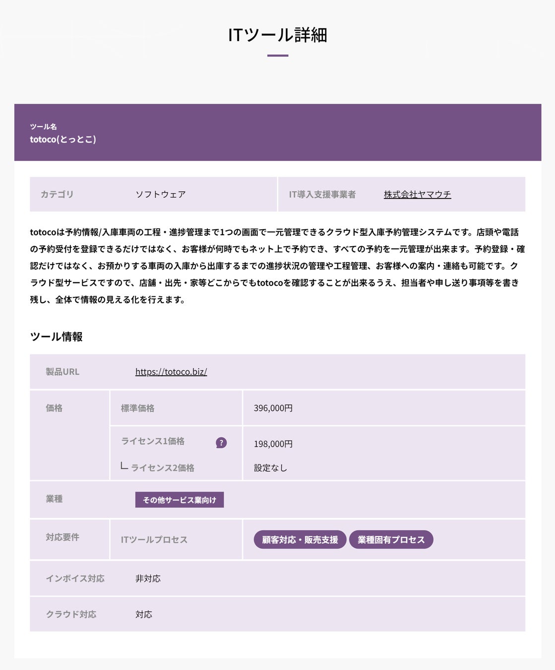 株式会社ヤマウチが運営する自動車整備工場特化型の車検ネット予約管理サービス「totoco(とっとこ)」は、2024年6月より令和5年度補正サービス等生産性向上IT導入支援事業費補助金(以下、IT導入補助金2024)の対象となるITツールに登録されました。